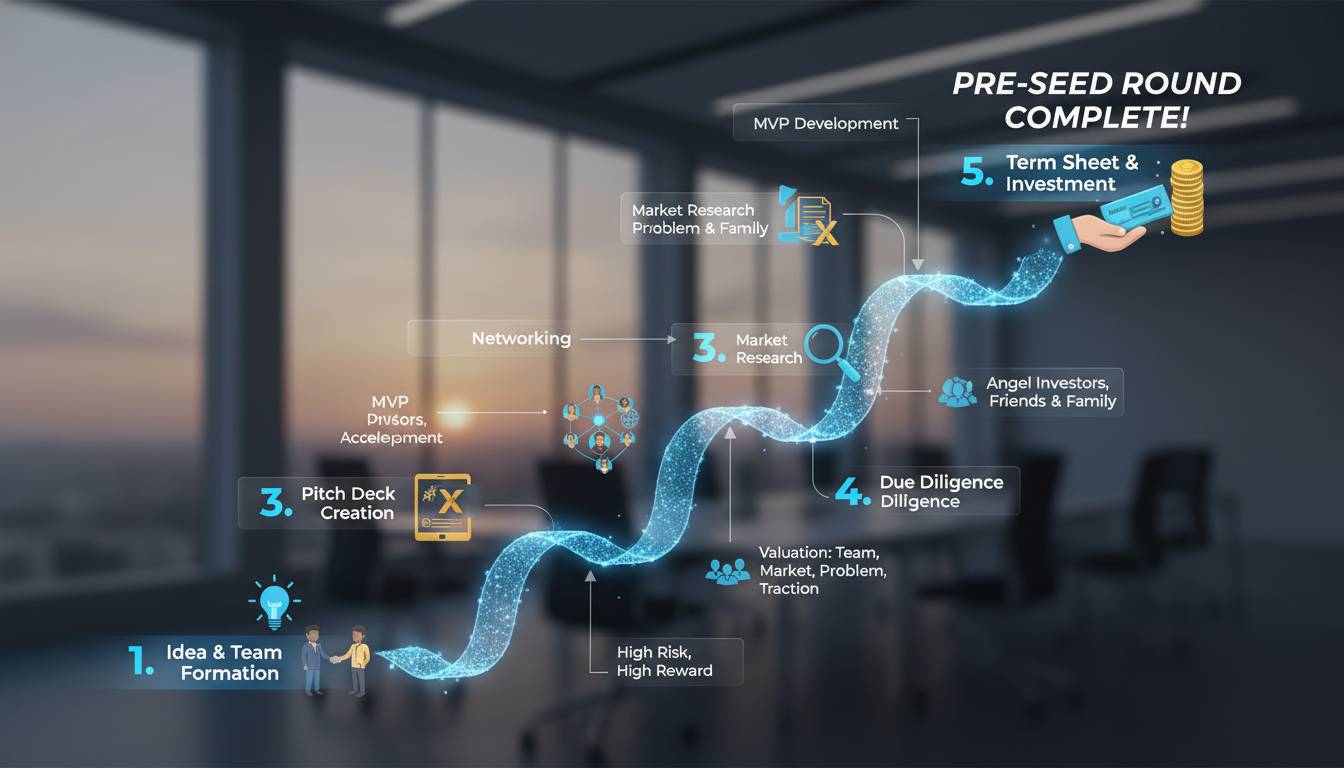 A pre-seed round is the earliest formal equity financing a startup typically raises—usually before seed funding but after the company has moved beyond just an idea. The “pre” signals that this capital comes before the traditional seed stage. Companies at this point usually have a founding team, some early product work, and perhaps initial customer conversations, but they lack the traction metrics that seed-stage investors traditionally expect.